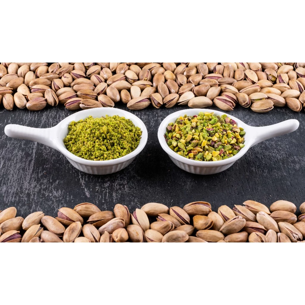 Pistachios are delicious green nuts with a mildly sweet taste and satisfying crunch. Eaten as a snack or used in baking, desserts, salads, and trail mixes. / Pista ialah kacang hijau yang enak dengan rasa manis ringan dan tekstur rangup. Boleh dimakan begitu saja atau digunakan dalam kek, manisan, salad dan campuran snek.