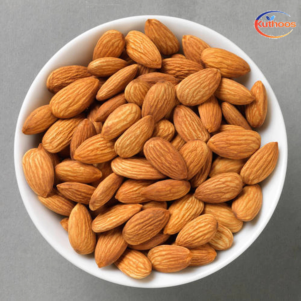 Premium-grade, handpicked California almonds – fresh, crunchy, and naturally rich in taste. / Badam berkualiti tinggi dari California, dipilih dengan teliti – rangup, segar, dan kaya dengan rasa semula jadi.